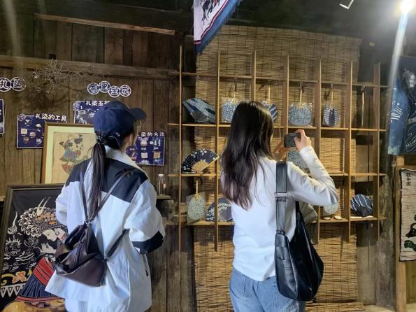 蓝白染山水,匠心绘非遗。调研队走进古镇扎染工坊,沉浸式记录扎染艺术的制作全过程,从布料扎结、染料调配到浸染晾晒,感受传统手工艺中蕴含的东方美学。扎染艺术的色彩肌理与桂林山水的水墨意境高度契合,将扎染技艺与山水景观融合呈现,能让短视频内容更具视觉冲击力与文化感染力,精准契合当代游客的审美需求。