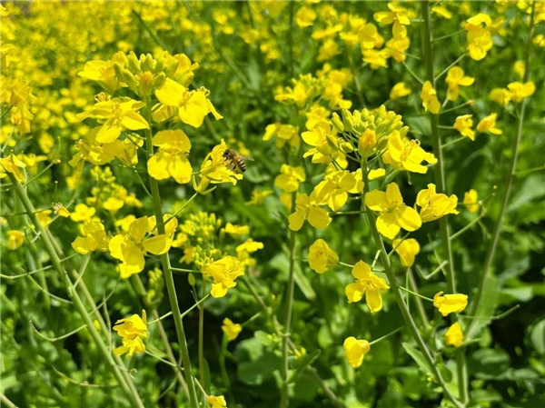 漫步田间,清风拂面,花香袭人。成片的油菜花在微风中轻轻摇曳,蜂蝶飞舞其间,远处村落炊烟袅袅,近处田垄绿意相间,目之所及皆是生机勃勃的景象,不少群众趁着晴好天气前来踏青赏花,感受春天的气息。