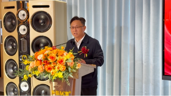 广州电子音响行业协会常务副会长兼秘书长张昌海致辞。他介绍,该协会由国光电器等企业发起成立,获评“广州市时尚产业集群音响灯光产业分链链主单位”等多项资质,愿与行业同仁携手,共促音响行业高质量发展。张昌海分享三点行业发展感想,呼吁企业抓住政策机遇加强品牌建设,避开低价竞争、推动产业转型升级;深耕科技创新,以工匠精神提升产品品质与核心竞争力;积极开拓海外市场,勇于与国际品牌同台竞技,培育更多中国音响民族品牌。他强调,斯巴赫广州运营中心开业是其品牌化战略的里程碑,肯定其在企业创新、品牌建设上的可喜成绩,期待斯巴赫乘风破浪,为行业发展带来更多惊喜,助力广州音响产业实现更高质量发展。