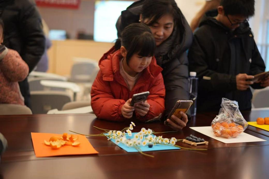 现场氛围热烈而温馨,孩子们听得格外专注,有的托着下巴认真思索,有的随手记录关键技巧,还有的迫不及待拿起手机尝试操作;一旁的家长们也主动参与学习,时不时与孩子交流拍摄心得,亲子间的互动温馨而融洽。为了让大家更好地掌握所学知识,志愿者们化身“一对一指导老师”,穿梭在课堂各个角落,耐心解答孩子们的疑问,从调整构图角度到控制曝光参数,手把手指导每一位孩子实操练习,用细致的服务让孩子们在实践中巩固知识、提升技能。