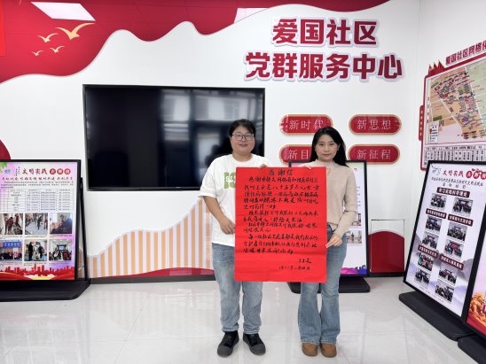近日,社区的暖心服务接连收获群众“点赞”,一面锦旗、一封手写感谢信,引领下基层服务成效的最生动注脚。教育楼独居老人王玉芝专程来到社区,将字迹工整的感谢信交到工作人员手中,信中细数了社区在日常照料、健康关怀、节日慰问等方面的点滴付出,由衷称赞“社区的孩子们大事小情都记挂着,比亲人还亲”。乡企楼独居老人、特殊家庭惠桂英更是带着印有感谢话语的锦旗,专程致谢社区长期以来的贴心关怀与悉心照料。朴实的话语、真挚的感谢,既是对社区服务的高度认可,更是对党建引领基层治理工作的充分肯定。