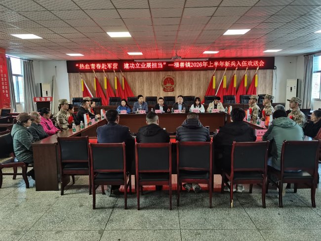 双拥情深,薪火相传。3月13日下午,福善镇隆重举办2026年上半年新兵入伍欢送仪式,以双拥共建的温暖力量,欢送辖区优秀青年奔赴军营,用实际行动诠释“军民团结一家亲、同心共筑强国梦”的深刻内涵。镇班子成员、全体入伍新兵、新兵家属代表及各村(社区)支部书记齐聚一堂,共同见证这场满载双拥情谊与青春担当的光荣时刻。