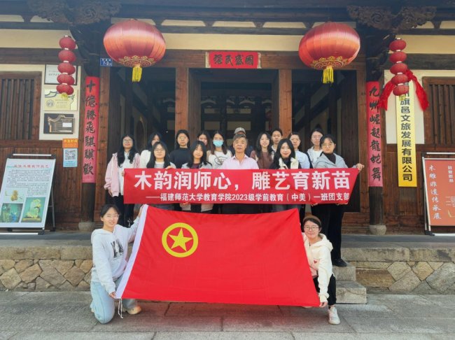 为传承中华优秀传统文化,将非遗技艺与学前教育专业特色相结合,提升师范生美育教学实践能力,12月11日,福建师范大学教育学院2023级学前教育(中美)一班团支部走进福州木雕非遗传承基地,开展以“木韵润师心,雕艺育新苗”为主题的团立项活动。