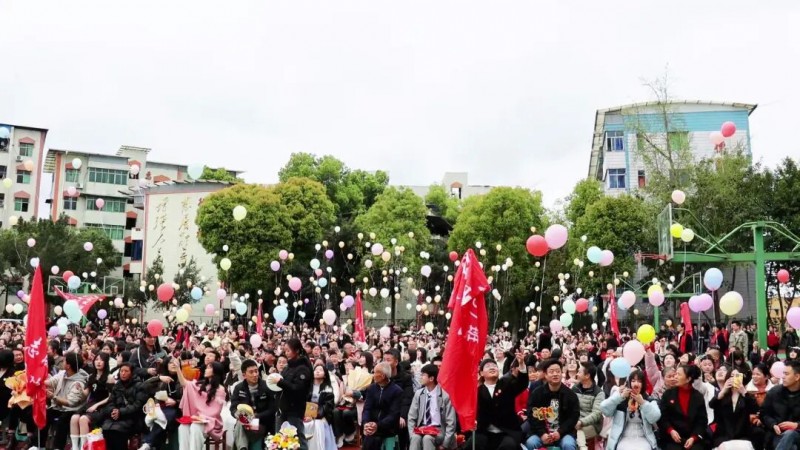 全场学子齐声高呼“高考必胜”,将梦想气球放飞长空。随后,全体学子与家长携手走过成人门、成功门,正式迈向人生新的阶段。