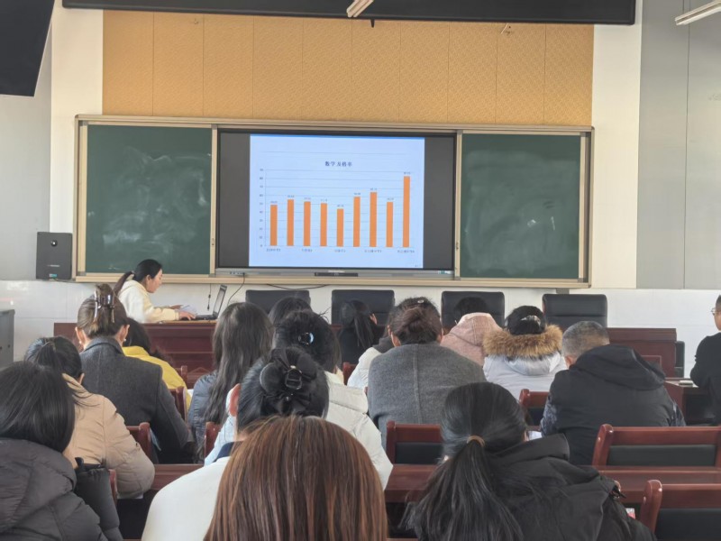 会议伊始,马主任通过清晰的柱形图,对全镇六年级期末成绩进行了全方位的解读。从各班各科平均分、及格率、优秀率进行全面、细致的数据分析;并与全县标杆学校、需追赶学校、追兵学校进行横向对比,清晰指出优势与不足,精准查摆教学中存在的问题。每一项数据都如同一面镜子,清晰地反映出学生当前的学习状况。马主任指出,“数据是冰冷的,但它揭示的问题是有温度的;同时也是无声的语言,它告诉我们优势所在,更提醒我们问题之处。”各位领导、老师认真聆听,对照分析,对学生的知识掌握程度和学习能力有了更为深刻的认识,为后续的精准教学提供了有力依据。