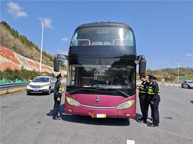 二、靶向精准查处,聚焦重点隐患:行动将“两客一危”及网约车作为核心检查对象。执法人员依托智能监控系统实时筛查可疑车辆,重点核查车辆道路运输证、驾驶员从业资格、包车线路标志牌、是否存在非法营运、网约车线上线下服务是否一致等关键环节,对发现的违法行为依法进行现场取证与处置,及时消除安全隐患。