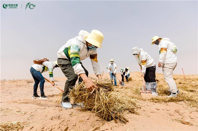 民勤曾是我国四大沙尘暴策源地之一,荒漠化威胁严峻。自 2015 年起,绿城持续投入梭梭种植与荒漠修复,十二年累计造林超 2600 亩,用绿色改变沙区地貌,有效遏制风沙侵袭、涵养水土,以实际行动响应国家 “双碳” 与生态保护战略,彰显企业环境责任担当。