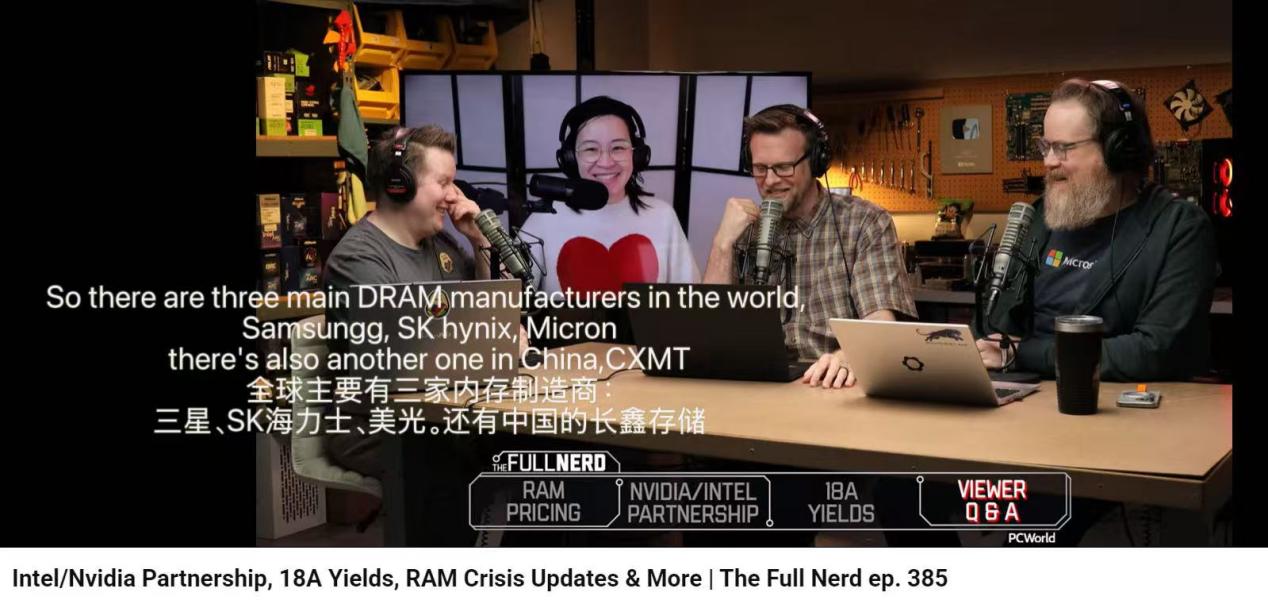 内存涨价“出圈”的同时,长鑫存储也走进全球视野。美国科技播客The Full Nerd Network讨论内存供应链时,将长鑫与三巨头并列,标志着其已从“落后追赶者”成为重塑全球存储格局的关键力量。当三巨头忙着收割AI红利时,深耕通用内存的长鑫,成为这场超级周期下的国产大赢家。