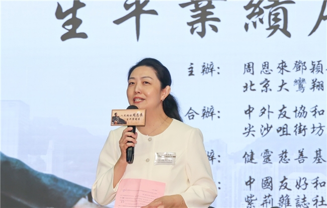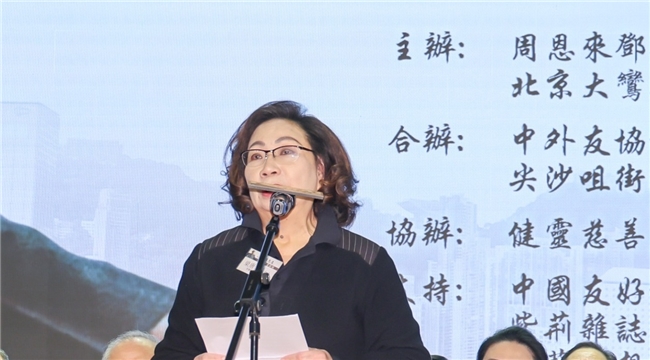 主礼嘉宾全国政协副主席梁振英夫人唐青仪女士:「被誉为“东方明珠”的香港,同周恩来亦很有缘分,他年轻时,前往欧洲求学曾途经香港,留下深刻印象。周恩来的爱,曾经浸润过这片土地。作为国家总理,周恩来关心香港同胞,为维护政治稳定,经济发展,文化需求,以及保障物资和淡水供应等等,倾注了大量心血。他为了香港回归祖国,开启香港历史新纪元,做了大量基础性、开拓性工作,值得后人永远铭记。」