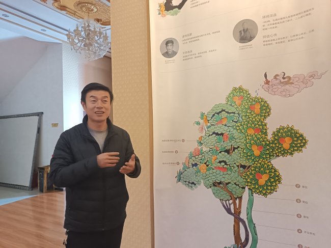 完德尖措在介绍唐卡传承情况。蔡得军摄