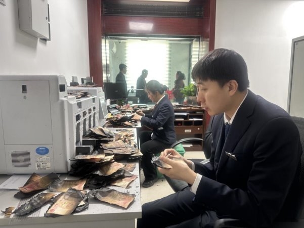 清点鉴定过程中,工作人员秉持“慢工细活”的严谨态度,小心翼翼地将粘连的纸币逐一剥离,借助专业鉴别设备与工具,严格对照《中国人民银行残缺污损人民币兑换办法》,逐张甄别票面剩余面积、仔细核对防伪特征,精准判定全额或半额兑换标准。为最大限度保障老人的财产利益,兑换全程实行双人复核、反复核验,做到不漏算、不少兑。“我必须要再慢一点、再稳一点,焦块上剥离的每一张钱,都是老人家的血汗钱”,所有人全然忘记了腰酸背疼的疲惫,也错过了吃饭的时间。6名业务骨干连续奋战8小时,最终圆满完成所有残币的鉴定、清点工作,成功为老人兑换现金56350元,仅约1000多元因烧毁程度过于严重无法兑换。当得知能兑换出56350元现金时,老人喜出望外,心中的绝望化作满满的感激,特意为工行保定涞源支行送上“残币兑换解民忧 真情服务暖人心”的锦旗,用最质朴的方式,表达对工行的感谢与认可,也为工行的责任与担当写下最生动的注脚。