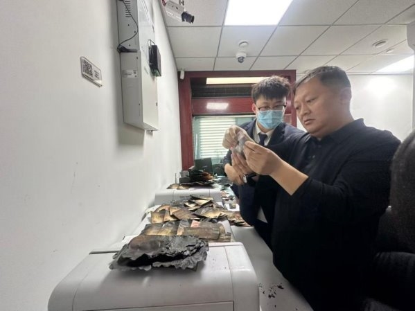涞源县王安镇银山口村的苑某是一名孤寡老人,平日里仅靠务农维持生计,生活本就清贫,又因脑出血身体不适,本打算用从银行取出的毕生积蓄前往医院医治,这份钱款是老人的救命钱、养老钱,承载着他对生活的全部期盼。可天有不测风云,老人家中突发火灾,火情虽被及时扑灭未造成人员伤亡,但存放家中的数万积蓄却在大火中被吞噬,又经灭火的水渍浸泡,纸币变得严重碳化、粘连结块,损毁程度触目惊心。看着辛苦一生攒下的积蓄变成一堆焦块,老人心急如焚、手足无措,陷入了深深的绝望之中。