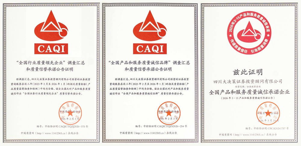 多年来,四川大决策不仅致力于通过专业的智投服务助力投资者价值投资,更以实际行动践行对消费者的质量诚信承诺,持续为投资者、员工、股东及社会创造多维价值,树立了证券投顾行业的诚信典范。