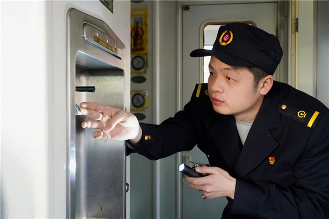 “车辆乘务员就是列车的‘随车医生’,每一趟值乘,都要给列车做全方位的‘健康把脉’,绝不能放过任何一处隐患,才能让旅客坐得安心、行得舒心。”一趟乘务交路下来,他要在十几节车厢间来回巡检,日均行走步数常常突破三万步。