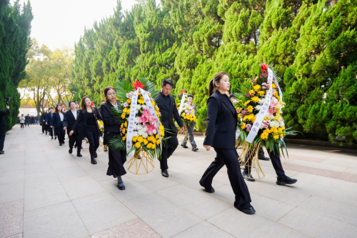 在庄严肃穆的氛围中,全体人员列队肃立、奏唱国歌,向革命先烈致以崇高敬意,寄托深切缅怀。自1994年集团创立起,沪港国际已连续30多年在清明节来到龙华烈士陵园,奏响祭扫与教育“两部曲”。这份坚守,是对历史的深刻铭记,对信仰的坚定传承。