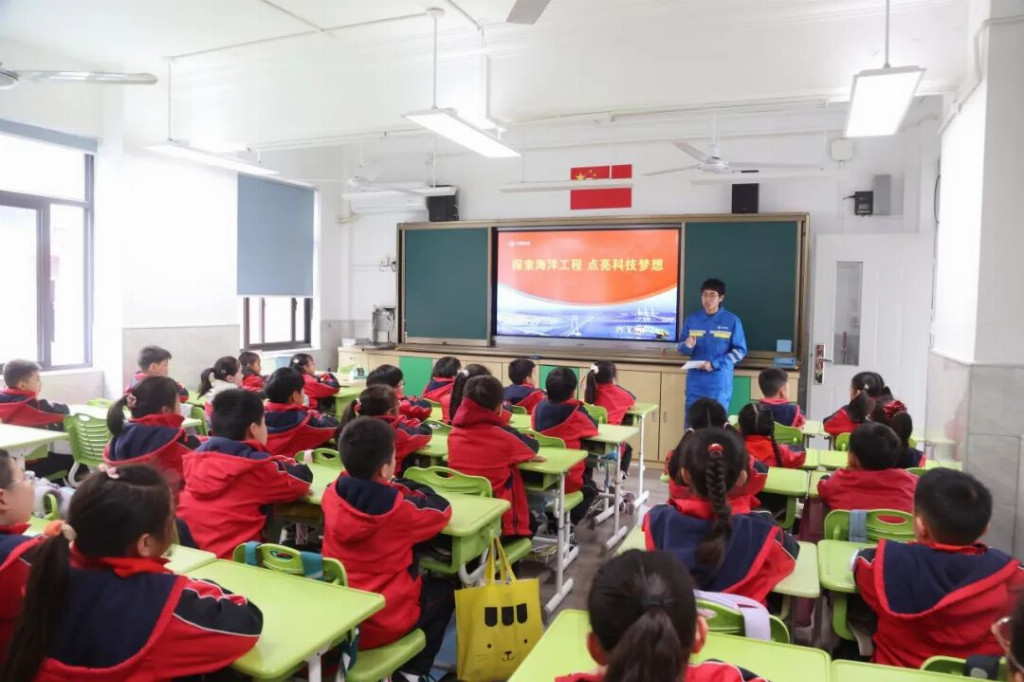 近日,中交三航局二公司船机施工处走进上海市浦明师范学校附属小学,开展“万名工程师进课堂”活动。工程师以“工程船:在海上“搭积木”的‘钢铁巨兽’”为主题,为学生们带来一堂生动有趣、干货满满的海洋工程船舶科普课。