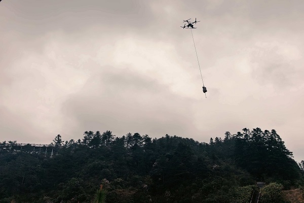 转机源于低空经济政策的落地生根。2025年初,国家低空经济相关政策持续推进,桂东县抢抓发展机遇,主动推动无人机吊运服务落地,既为山区“三农”发展带来新希望,也让对无人机应用敏感的返乡创业青年郭志标嗅到了商机。
