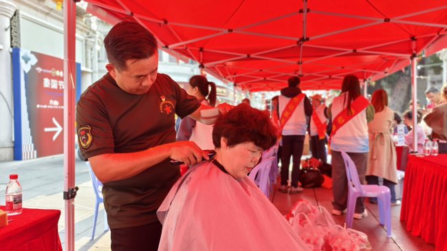 鹭岛老兵学雷锋志愿服务队队员储丽辉利用在部队学会的剪发手艺,先后为十余名群众免费理发,“看到大家竖起大拇指,我心里特别开心,能发挥专长为大家服务,感觉非常有意义。”厦门市劳模志愿服务队中山路驿站负责人张祥杰带领队员,为市民游客提供眼镜维护、手表擦拭、口腔清洁、血压测量等贴心服务,成为中山路一道亮丽的风景线。
