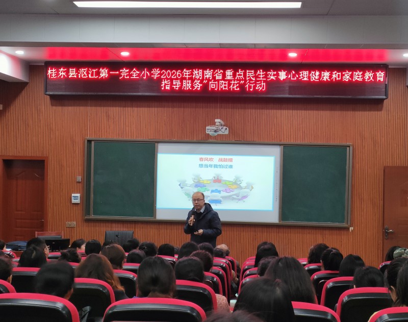 家庭是人生的第一所学校,父母是孩子的第一任老师。为扎实推进心理健康和家庭教育指导民生实事,构建家校协同育人新格局。3月31日,由桂东县妇联牵头开展的心理健康和家庭教育指导服务“向阳花”行动,走进沤江第一完全小学。心理专家与家长齐聚一堂,共探孩子自主成长之道,为每一朵“向阳花”的茁壮成长注入能量。