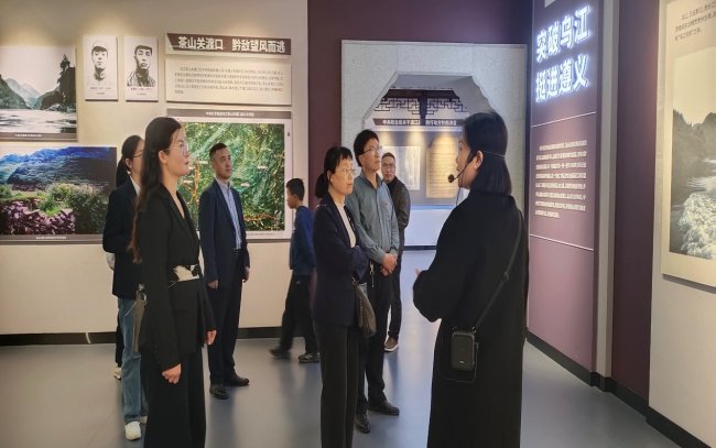 全体人员在讲解员的引导下认真深入了解猴场会议的历史背景、会议经过及重大意义。猴场会议于1934年12月31日至1935年1月1日召开,被周恩来同志誉为“伟大转折的前夜”。会议作出了《关于政治局扩大会议贯彻执行黎平会议决议的决定》,为遵义会议的胜利召开奠定了坚实的思想、政治和组织基础。通过观看历史图片、珍贵文物,党员同志们深刻感受到革命先辈在极端困难条件下坚持真理、修正错误、敢于斗争、善于斗争的坚定信念与政治勇气。
