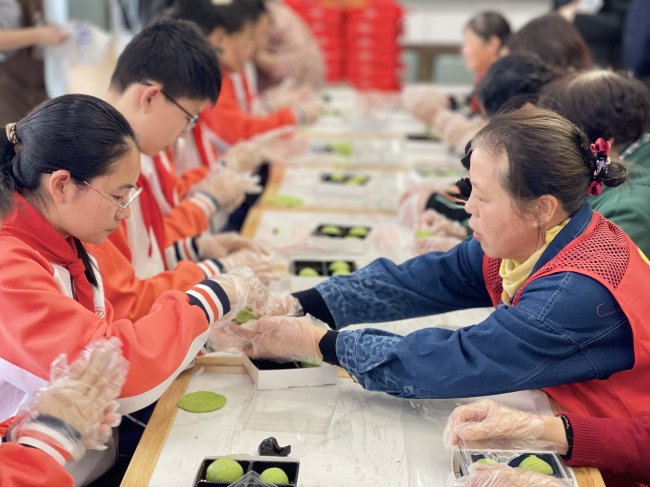 青团送暖,情系万家。活动最后,学生团员与“三色堇”巾帼志愿服务队队员组成“送暖小队”,将分装好的青团送至社区高龄、独居老人家中。“老战士”管爷爷接过青团:“你们总记挂着我,这青团甜在心里!”一份份青团,不仅承载着节日祝福,更传递着社区大家庭的温暖与关怀。