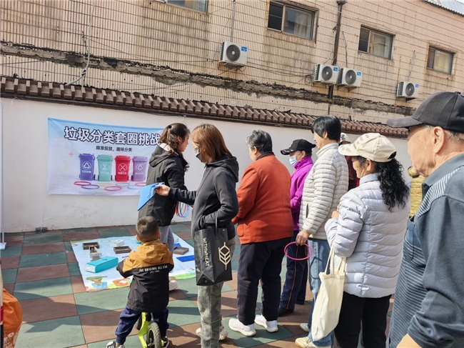 现场互动实践分两次开展,各社区广场热闹非凡,分类互动区、专业回收区有序运转,吸引各年龄段居民踊跃参与。趣味闯关套圈区人气高涨,居民抢答垃圾分类知识通关兑换套圈,瞄准垃圾图片投掷,答对类别即可获得纪念品,在欢乐中巩固分类知识,实现“学中玩、玩中学”。