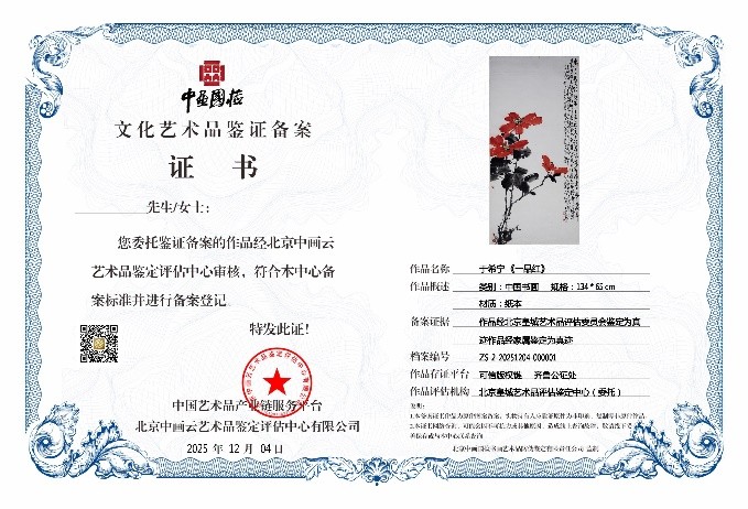 据中画国检备案中心负责人曹彩霞介绍,该中心是由北京中画国检书画艺术品防伪鉴定有限责任公司(中央财政预算管理企业),与中国艺术品资产共同市场联合发起的中国艺术品产业链服务平台的核心机构,联合依托全国艺术创作经营机构、皇城艺术品评估鉴定中心、可信版权链、公证机构等国家级权威资源而成立,运营团队深耕艺术品产业链26年,具备深厚行业积淀与专业技术实力。此次线上平台正式运营,秉承“科技赋能艺术、以专业守护价值”的服务理念,精准破解艺术品市场“真伪难辨、确权困难、传承无据、交易不畅”的行业痛点。
