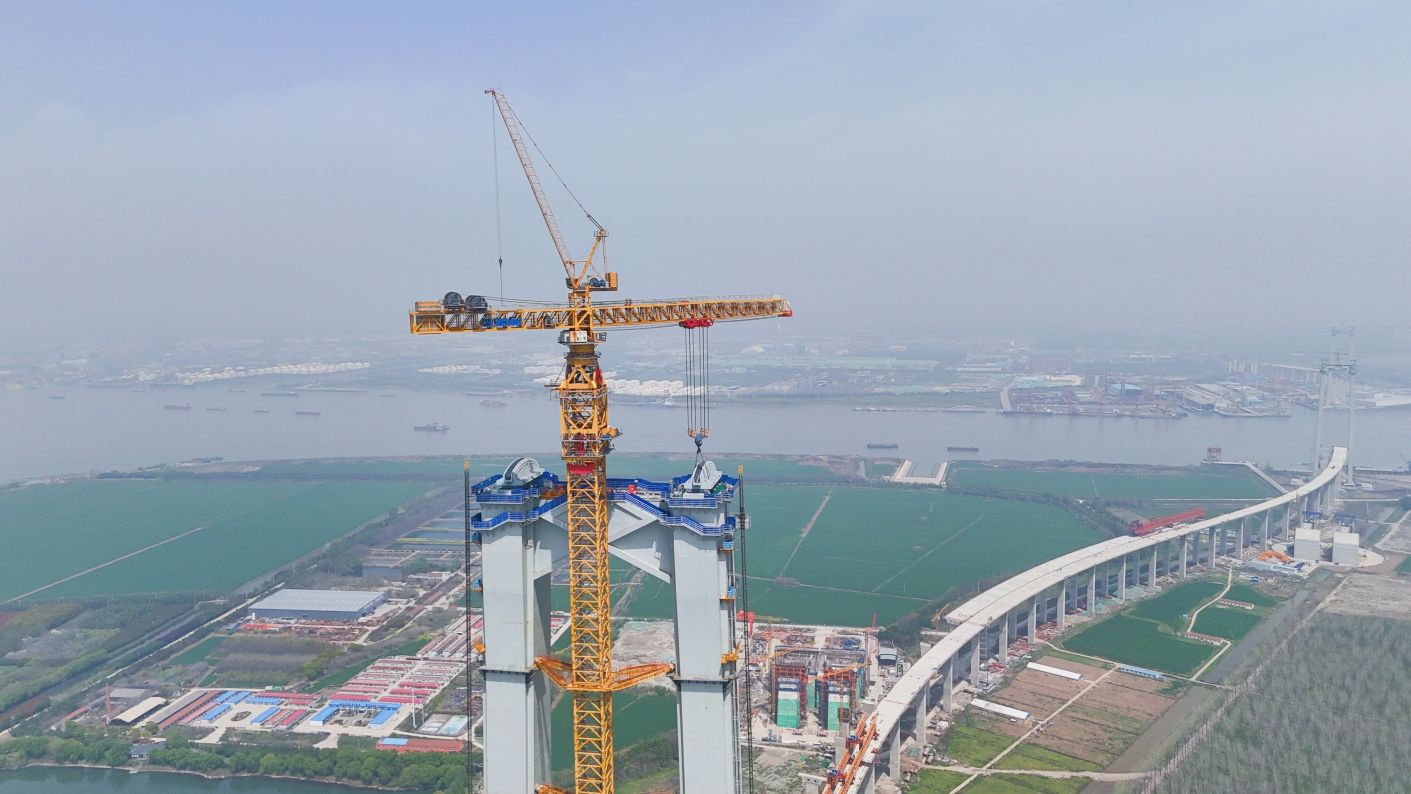 中交路建张靖皋长江大桥南航道桥北主塔主索鞍全部吊装完成