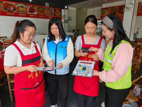 活动采取“宣传+指导”双线推进模式。宣传员逐一走访餐饮、零售及住宿等各类商铺,发放垃圾分类宣传资料,并结合各业态经营实际,重点讲解厨余垃圾、可回收物和其他垃圾的分类标准与投放要求。针对餐饮店厨余垃圾多、零售店铺包装废弃物量大的特点,宣传员耐心解答商户日常分类中的常见疑问,如“带油污的餐盒如何投放”“快递胶带属于哪类垃圾”等,以通俗语言和日常实例帮助商户掌握分类要领。走访酒店宾馆时,宣传员还特别提醒商户严格落实不主动提供“六小件”的要求,从源头减少一次性用品消耗,倡导绿色经营、低碳入住理念。