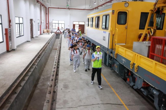 在志愿者的带领下,师生们有序参观了高铁综合维修基地的作业场地、设备设施,近距离观察铁路养护作业流程,直观感受铁路工作人员严谨细致的工作态度和专业的作业技能。同学们满怀好奇,认真聆听讲解,积极提问互动,在亲眼见证、亲耳聆听中,深入了解高铁背后的安全保障体系,进一步加深了对铁路安全知识的理解与记忆。