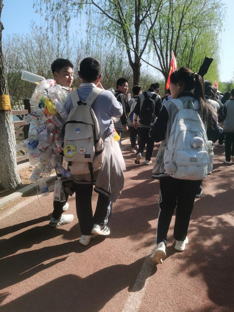 更可贵的是,同学们即便疲惫不堪,仍不忘文明担当。一路弯腰捡拾垃圾,将瓶罐纸屑细心收纳,背包上挂满的空瓶,成了最特别的青春勋章。骄阳晒不退责任,疲惫挡不住善良,用实际行动守护一路洁净。