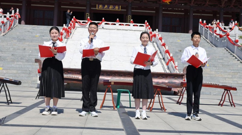 学生代表栗子恬分享感悟,感恩陪伴、立志前行。随后,一场盛大的文艺汇演在棋盘广场拉开帷幕。《少年有志》手势舞整齐有力,古筝合奏《盛世国乐》盛世华章,诗朗诵《庆度山礼赞》礼赞圣山、赓续文脉 ,《如愿》歌声深情悠扬,武术表演气势如虹,《立春》空灵澄澈,快板《赞唐县》道出家乡骄傲,一曲《同手同脚》温暖全场。少年意气与唐尧文脉交融,青春之声在庆都山间久久回荡。
