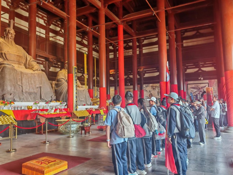 正午时分,有序用餐、文明休整。同学们自备垃圾袋,垃圾入袋、人走场清,践行光盘行动,尽显实验学子素养。餐后各班开展趣味团建,游戏互动、合影留念,在欢笑中懂得:一个人走得快,一群人走得远。随后,全体同学轻声慢步、庄严参观唐尧大殿,敬畏历史、爱护文物,在静默中感受文化的力量。