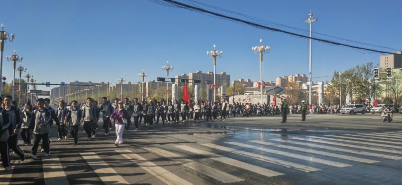 清晨7:30,校园里旌旗猎猎,学子整装列队。史宪彪校长作动员讲话,强调安全与纪律,点燃全体师生远足的热情。7:40许,队伍从学校正门出发,长长的队伍如一条长龙,向着庆都山蜿蜒前行。