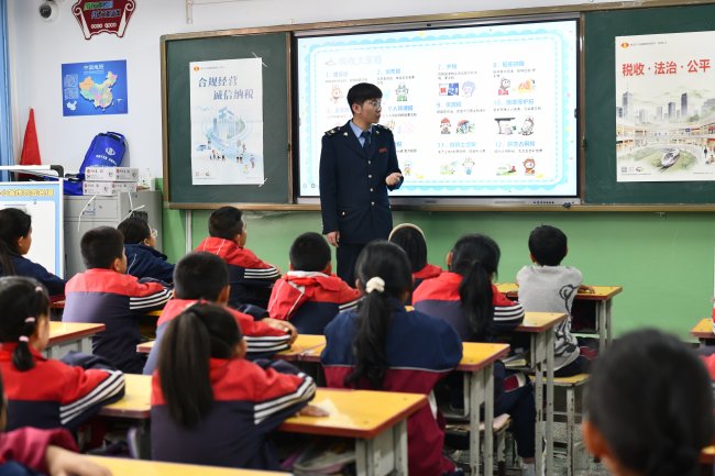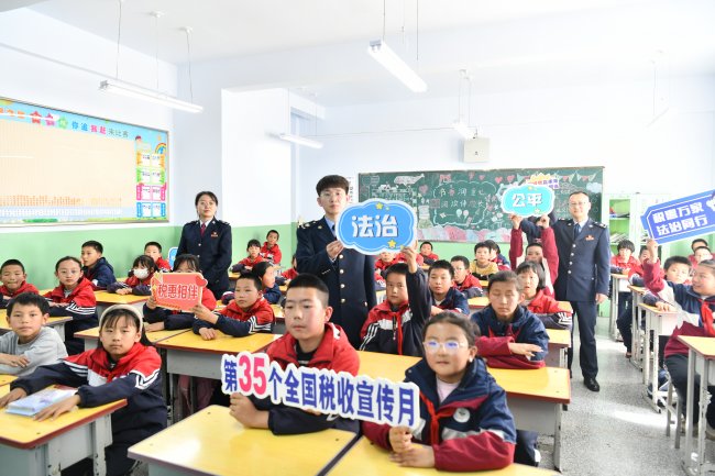 为深入开展第35个全国税收宣传月活动,国家税务总局西宁市湟中区税务局走进鲁沙尔第二小学开展税收普法进校园活动,采用“税收第一课+操场户外讲解+趣味互动+实践签名”的多元化形式,将税法知识通俗化、趣味化,引导青少年树立依法纳税、崇尚公平的法治观念,让法治理念扎根童心。