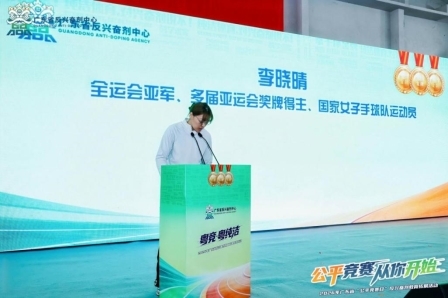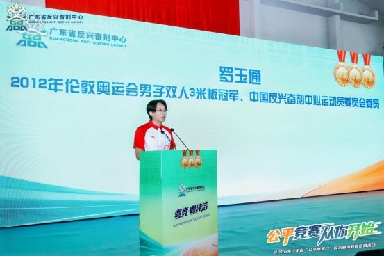 2012年伦敦奥运会跳水男子双人3米板冠军、中国反兴奋剂中心运动员委员会委员罗玉通作为运动员代表向全体运动员发出呼吁:秉持纯洁之心参与体育运动,坚决远离兴奋剂,杜绝任何形式的违规行为!拿道德的金牌、风格的金牌、干净的金牌,守护洁净赛场,让纯洁体育精神在南粤大地薪火相传、生生不息!