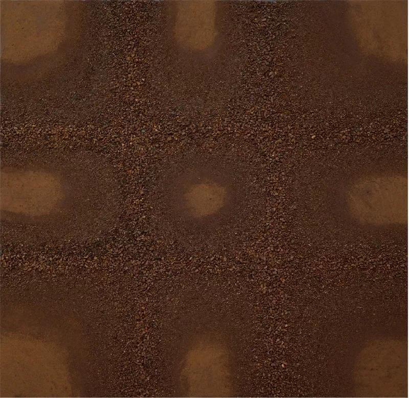 在创作过程中,他打破传统艺术材料的边界,不拘泥于单一材质的表达,将不同颗粒大小、不同色泽层次的薯莨残渣,与大漆、丙烯等多种艺术材质巧妙融合、反复实验。薯莨残渣的天然肌理、质朴色泽,与漆的厚重温润、丙烯的灵动通透相互碰撞、彼此交融,经过层层叠加、打磨、剥离,生发出极具辨识度的独特视觉图式与画面效果。