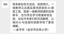 与会教师纷纷表示,本次活动兼具理论高度与实践实效,令大家收获颇丰。今后将把所学所思应用于日常教学,切实提升学生数字素养,推动人工智能教育在课堂落地生根。